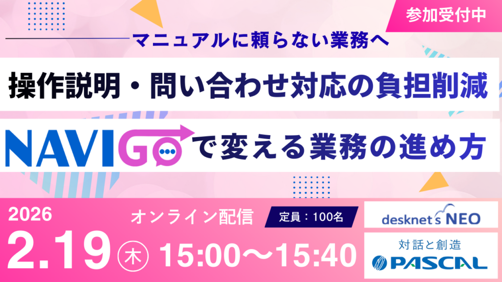 2月19日(木)15:00–15:40、株式会社ネオジャパン様と弊社の共催でウェビナーを開催いたします。