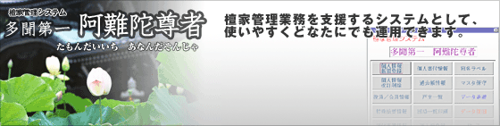 檀家管理システムは、檀家の皆様の情報などの各種情報を、パソコンを利用して効率よく処理し、管理するシステムです。