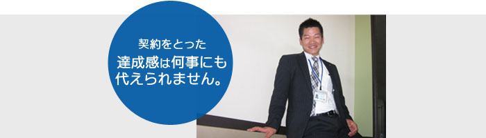 入社してから6ヵ月のとき、1つのアポイントをとりました。 すぐさま営業に行きましたが、なかなか交渉が難航しておりました。 上司先輩のアドバイスをいただきながら、 何度も電話し、足を運ぶことで、次第にお客様も心を開いていただくようになり、 やっと契約にたどり着くことができました。